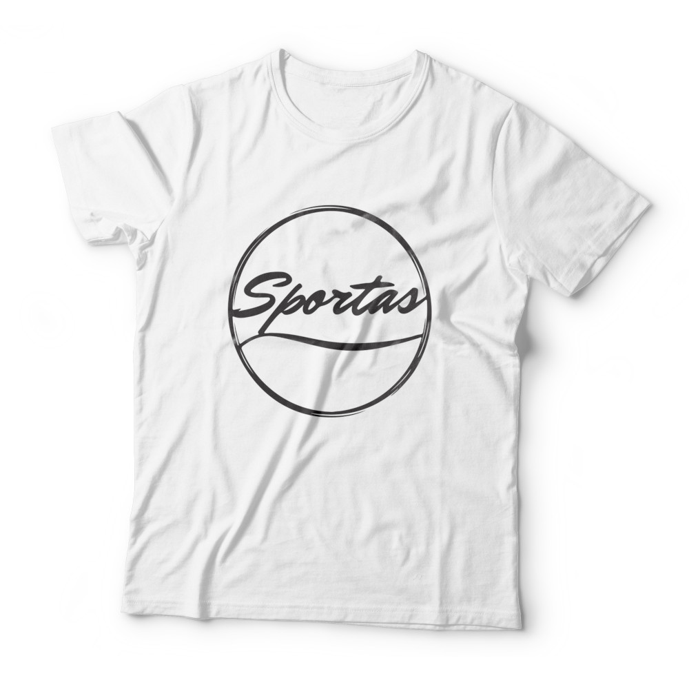 Majica s kratkimi rokavi z napisom Sportas, bela. Iz lahkega in trpežnega materiala, primerna tudi za intenzivno vadbo.