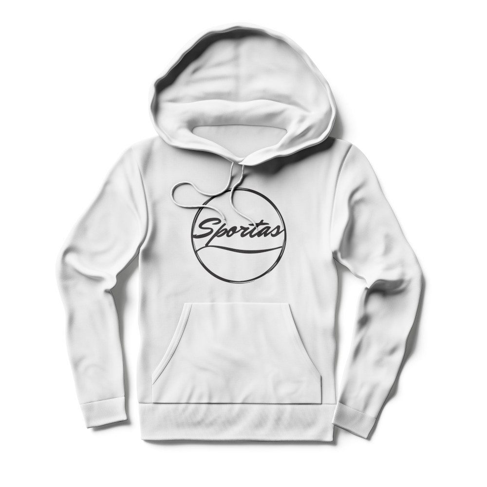 Pulover s kapuco z napisom Sportas, bel. Iz lahkega in trpežnega materiala, primeren tudi za intenzivno vadbo.